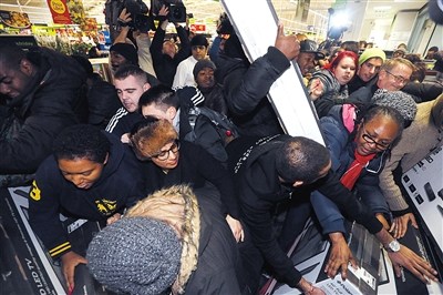 中新网11月27日电 今天是美国的“黑色星期五”,而这一天是美国人圣诞节前的大采购日,商家折扣之大、民众购物之疯狂,犹如中国的“双十一”购物节的翻版。据悉,美国的圣诞节大采购一般是从感恩节之后开始的。感恩节是每个11月的第四个星期四。因此它的第二天,也就是11月的第四个星期五也就是美国人大采购的第一天。因为美国的商场一般以红笔记录赤字,以黑笔记录盈利,而感恩节后的这个星期五人们疯狂的抢购使得商场利润大增,因此被商家们称作“黑色星期五”,商家期望通过以这一天开始的圣诞大采购为这一年获得最多的盈利。在这疯狂的一天,也会有不少的疯狂事上演。