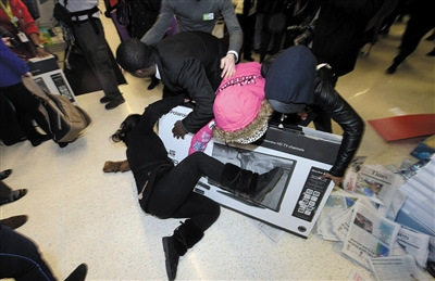 去年“黑色星期五”当天,几乎整个英国的大型商场都上演了“抢购”热潮,数以千计的民众等商店一开门就涌入商场抢购,引发混乱,甚至为了心仪的打折商品大打出手。