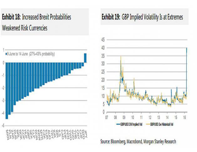 美银美林预计,在英国投票离开欧盟情况下,美元相对于其它除了日元和瑞郎的G10货币将表现突出。英国退欧预计英国股市也将会大幅下跌15%,而美股标准普尔500指数也会在英国退欧情况跌逾10%,这导致日元和瑞士法郎避险需求骤增的同时也会令市场对美元的避险需求暴增。