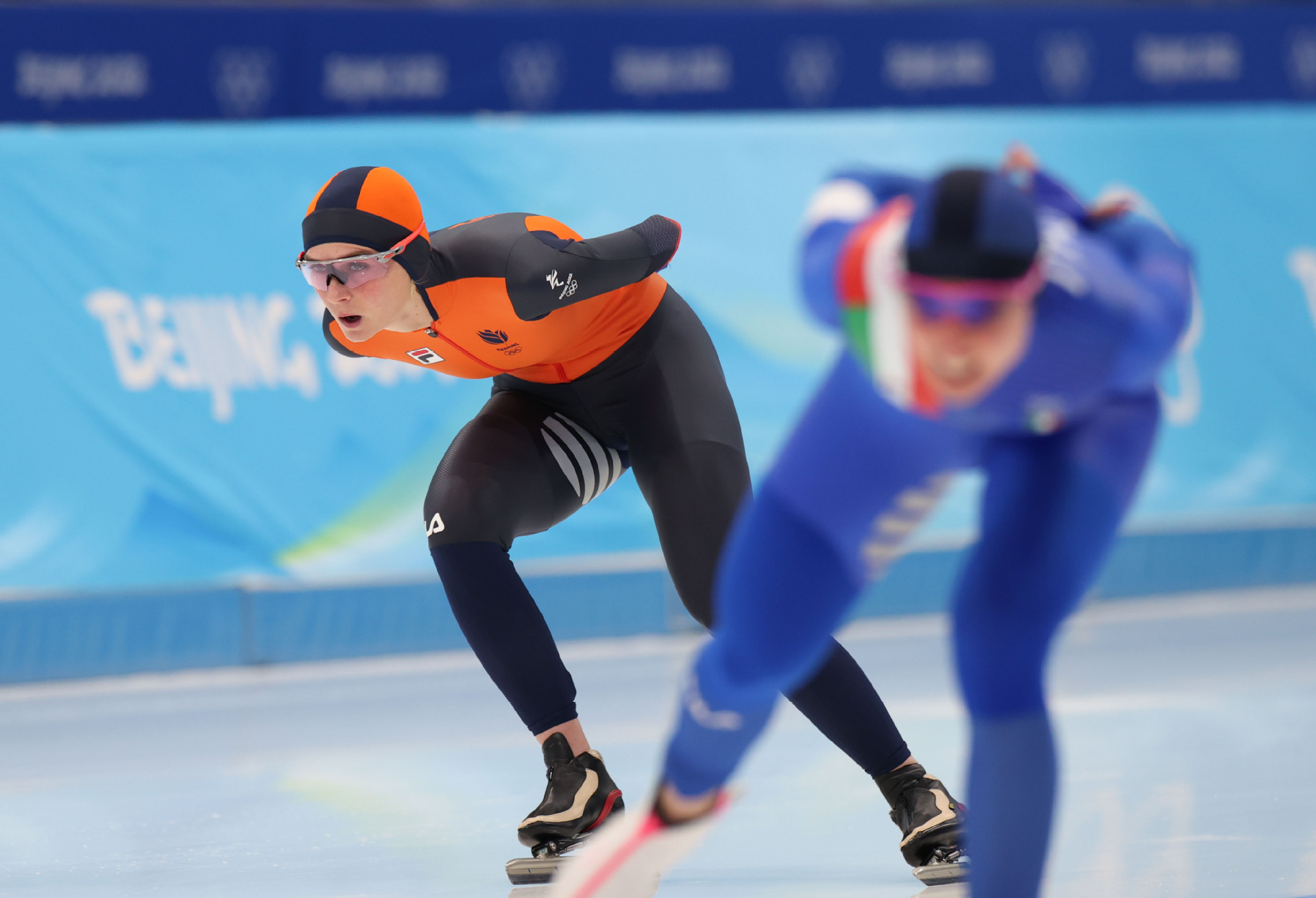 5日,荷兰选手伊雷妮·斯豪滕(左)在比赛中 (图片来源:新华社)