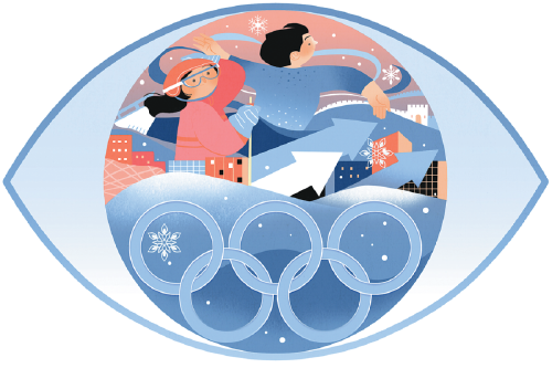 北京冬奥会引发国际社会高度关注,这与中国的国际影响力迅速提升息息相关。(漫画作者:中国日报美术部 李旻)