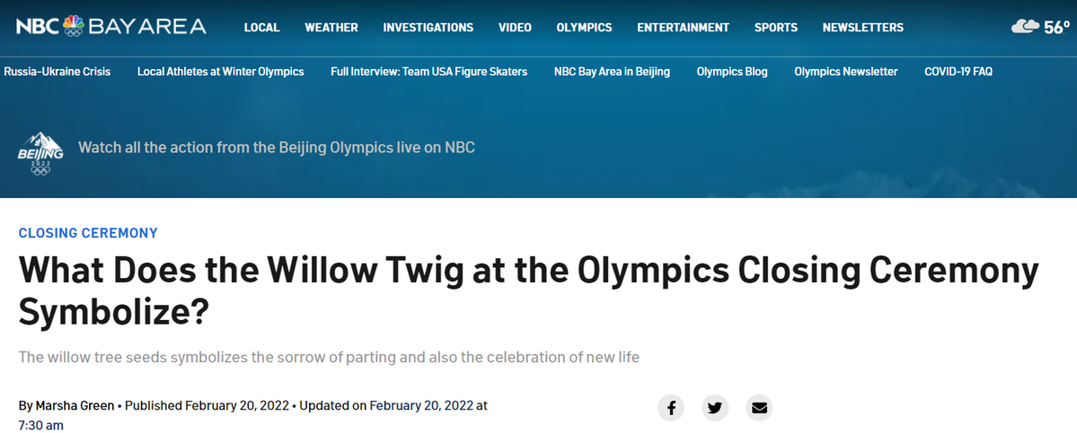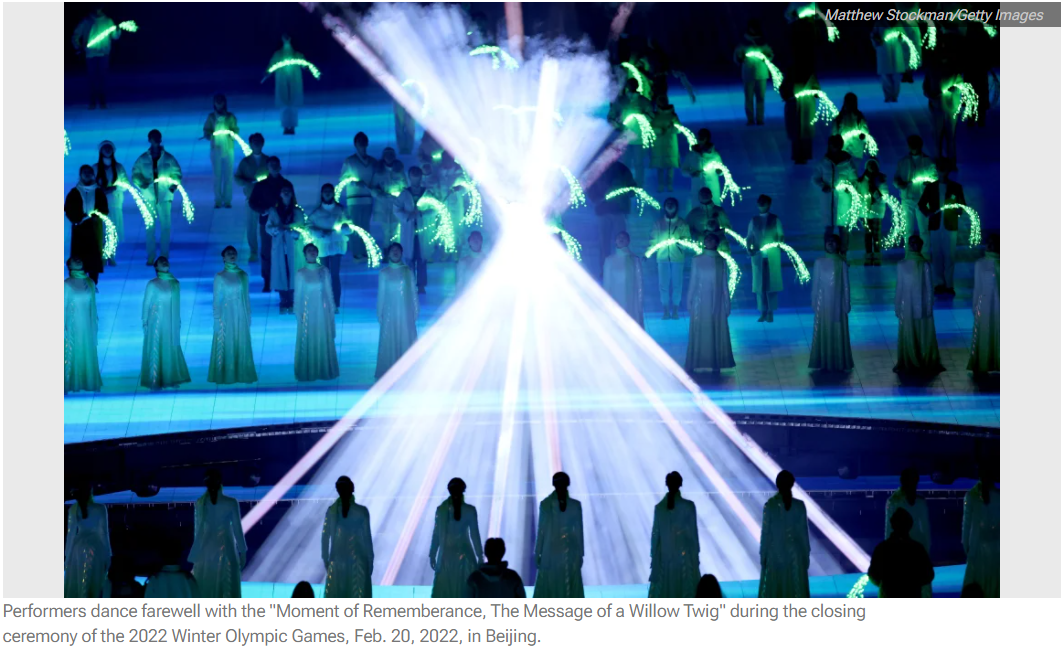 “又一届冬奥会落下帷幕,每一次的闭幕仪式中,都会有欢乐、庆祝和反思的时刻。”当地时间20日,美国国家广播公司NBC报道了一篇题为《奥运会闭幕式上的柳枝象征着什么?》的文章,揭秘了闭幕式以“折柳”作为“缅怀”主题的深刻寓意及主创团队的独具匠心。