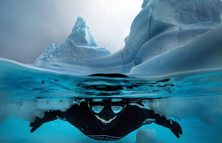 他称开始的5分钟是最艰难的,身体未适应零下2℃的海水,脑袋都被冻僵。但与海豹嬉戏同鲸鱼遨游好不畅快。