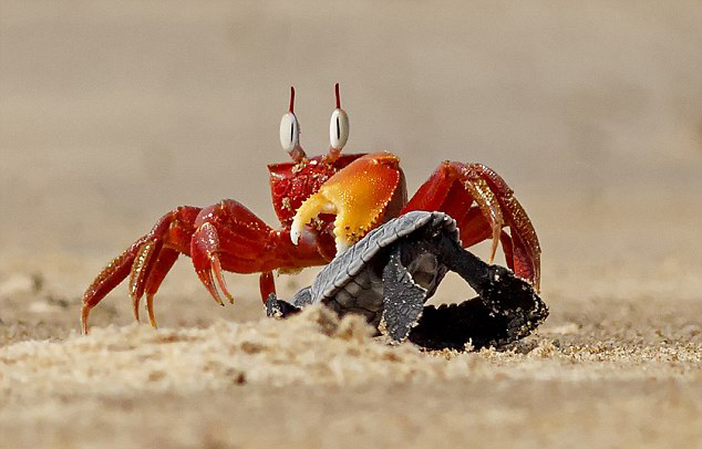 来源标题:印度沙蟹欺负小海龟演绎现实版“蟹老板”(组图)