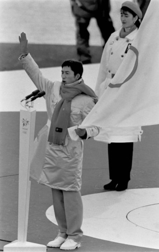 1998年长野冬奥会开幕式上,日本运动员荻原健司代表全体参赛运动员宣誓。新华社记者兰红光摄