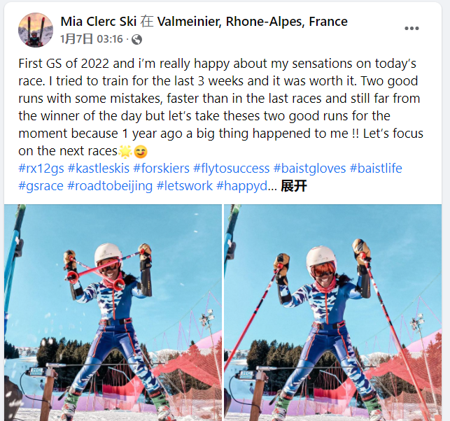 最近,她刚刚在社交媒体上更新了自己在法国参与赛事的心情。不难看出,拥有冰雪梦想的她,面对挫折,选择乐观面对。