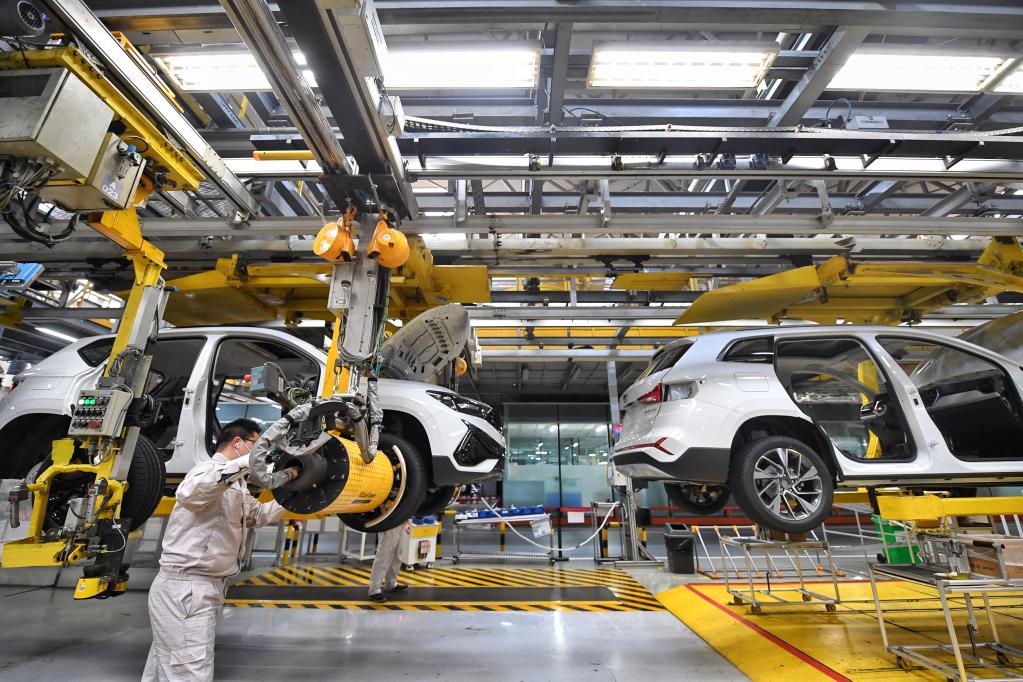 2月17日,一汽大众汽车有限公司成都分公司工人在总装车间作业。(新华社记者刘坤摄)
