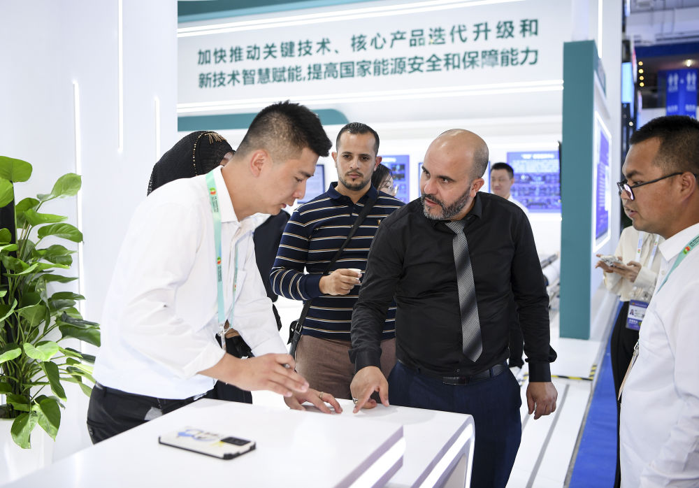 9月21日,嘉宾在第六届中国—阿拉伯国家博览会现场了解清洁能源项目。新华社记者 冯开华 摄