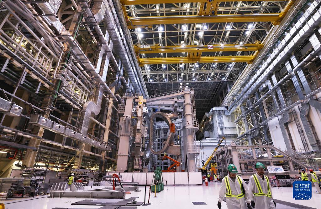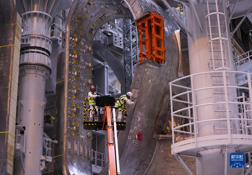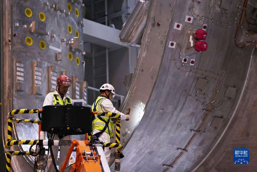 11月23日,工作人员在位于法国圣保罗-莱迪朗斯的国际热核聚变实验反应堆(ITER)的预组装大厅里忙碌。新华社记者 高静 摄