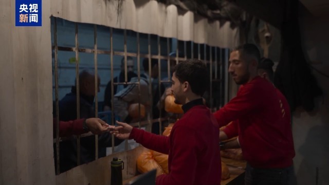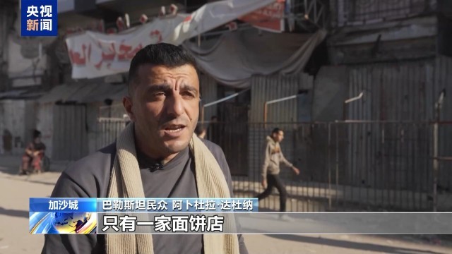 总台报道员 奥萨马·阿什:每天在这样的时刻,加沙城民众都要在为数不多的面饼店门前长时间等待。由于燃料短缺,我身后的这家面饼店,13日已经停止营业。