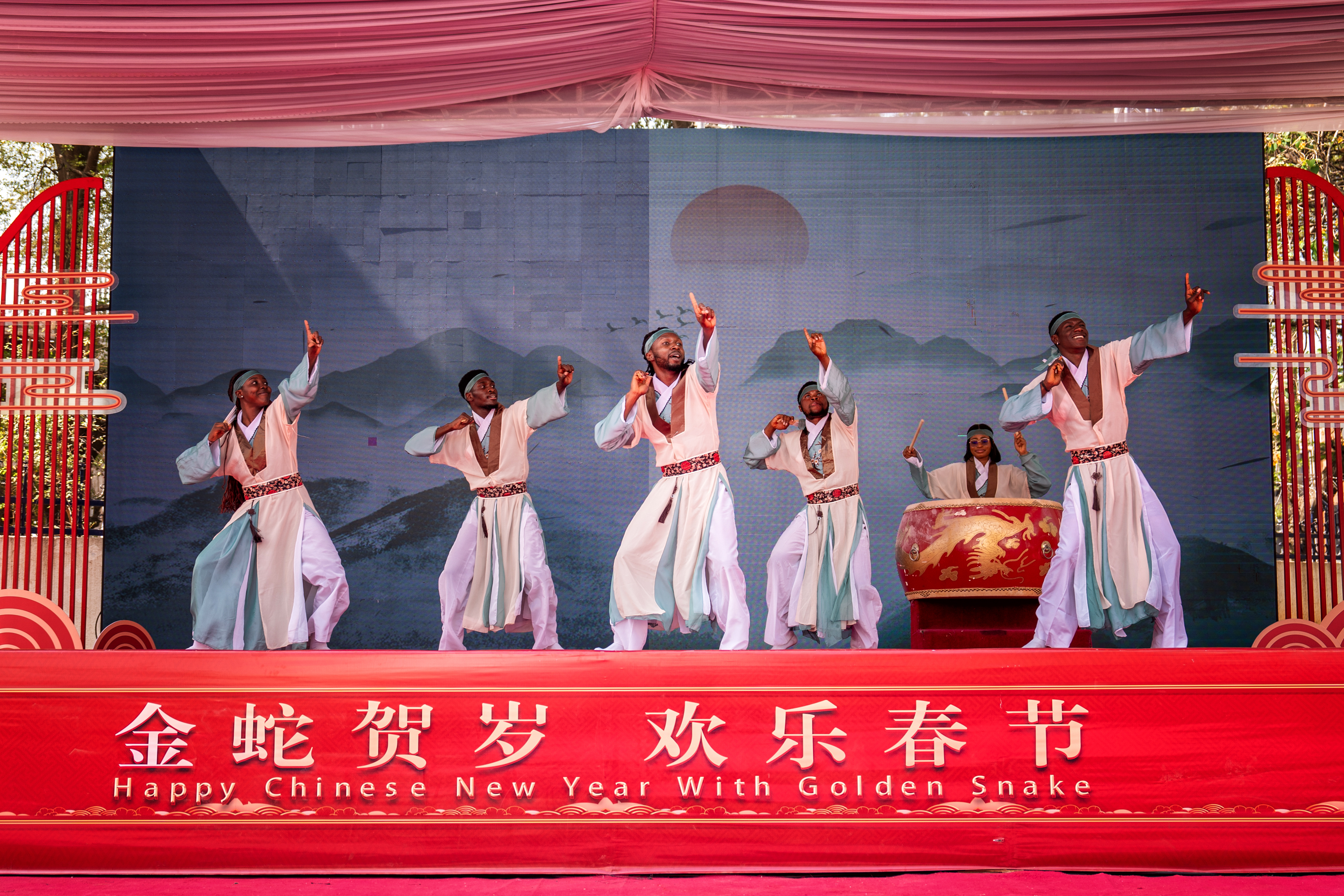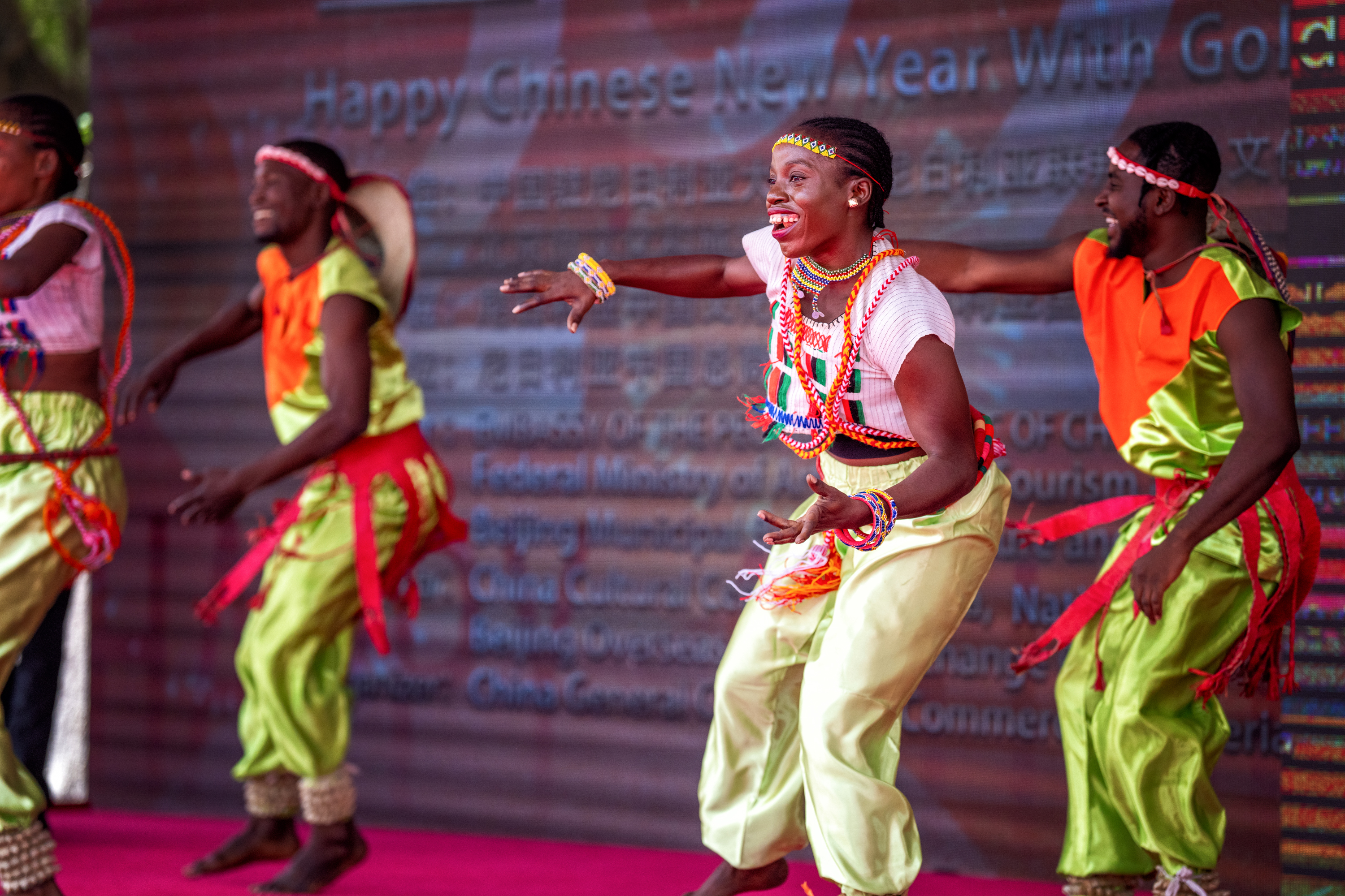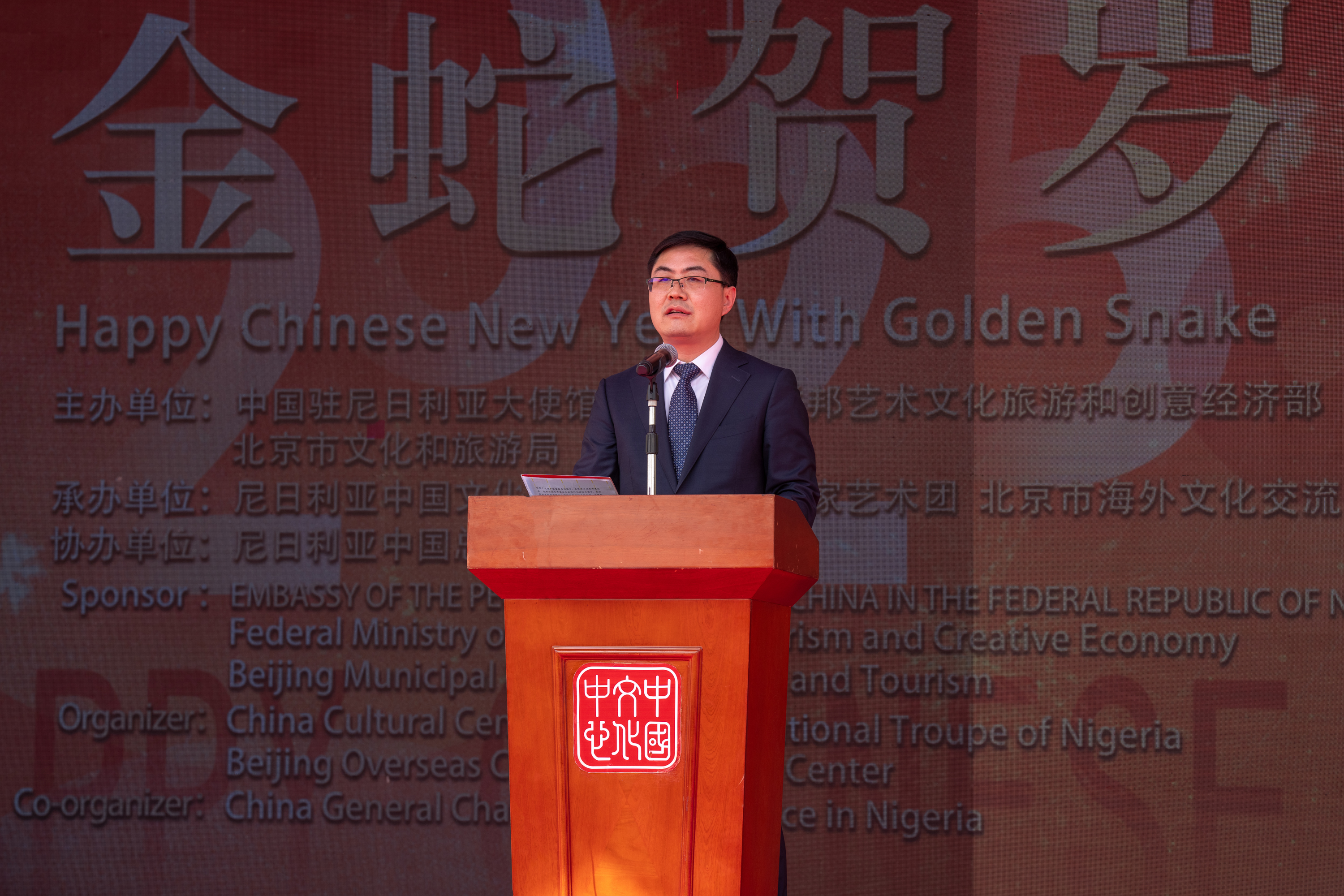 文艺演出精心设计《金蛇贺岁》《魅力北京》《美美与共》《奔向春天》四个篇章,来自中国和尼日利亚的艺术家们携手同台,让到场观众充分感受到了中国文化的优美典雅与尼日利亚文化的欢快悦动。中国驻尼日利亚特命全权大使于敦海、北京市文化和旅游局副局长徐振涛与尼日利亚联邦艺术文化旅游和创意经济部执行常秘拉法尔出席活动并致辞。