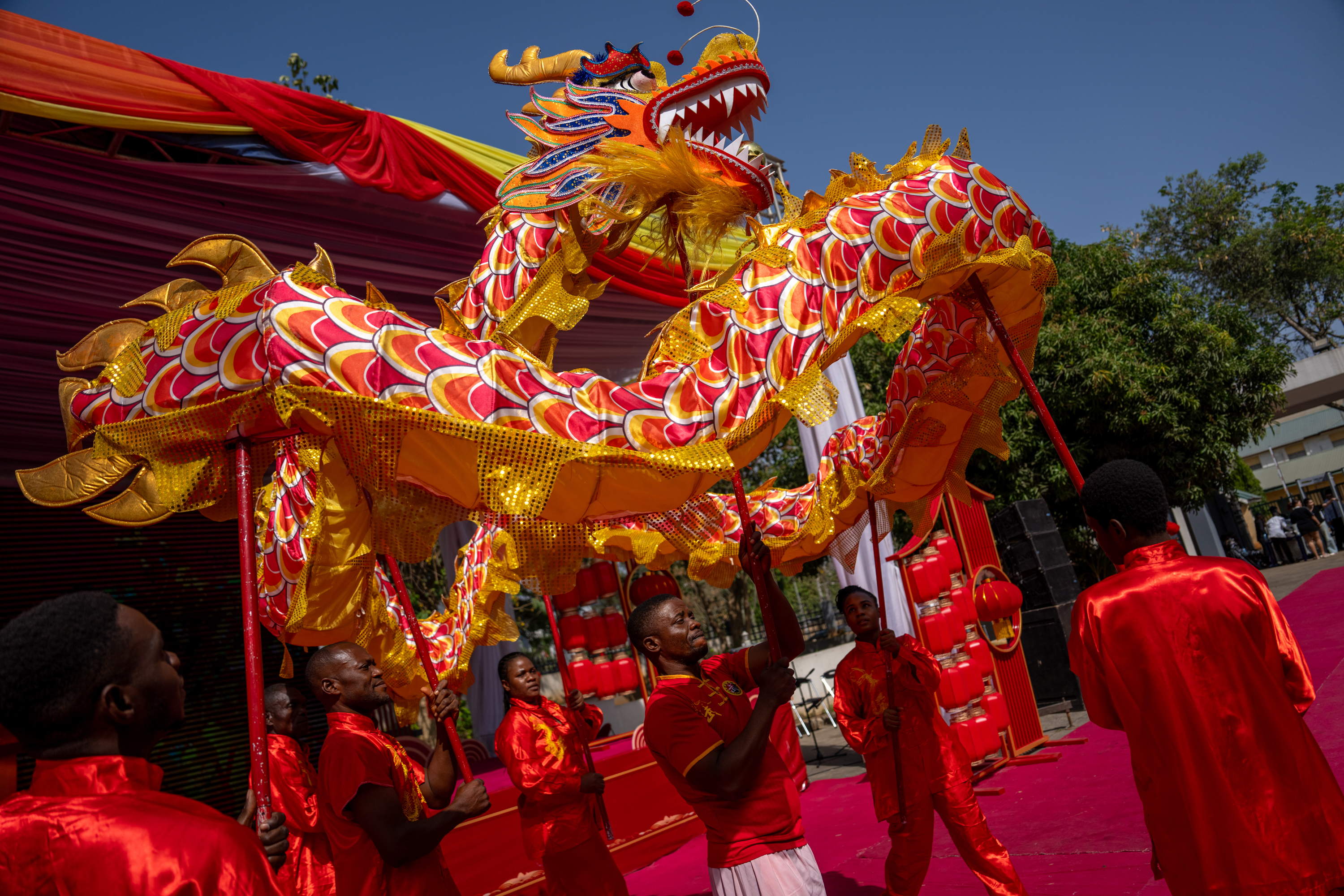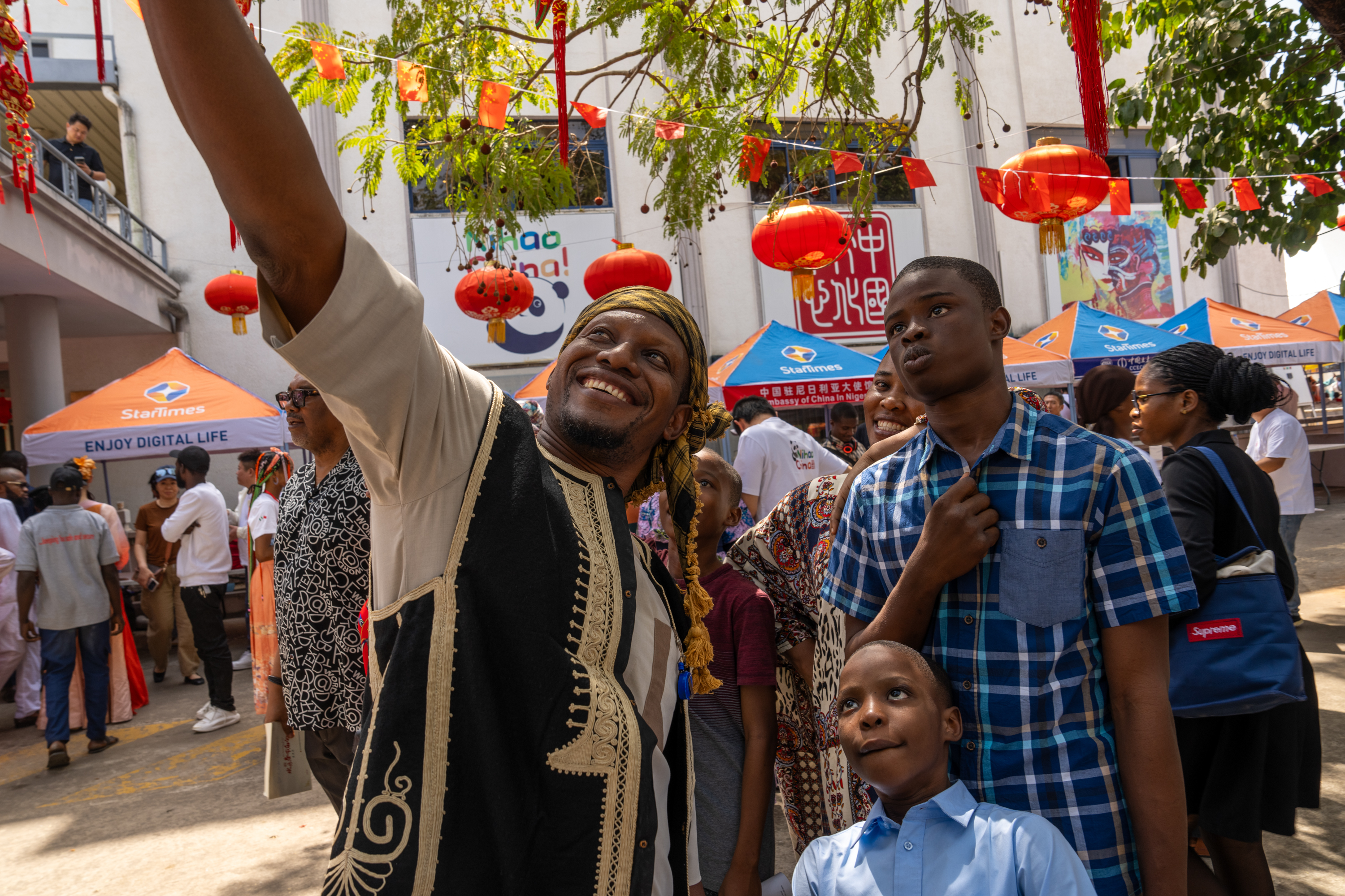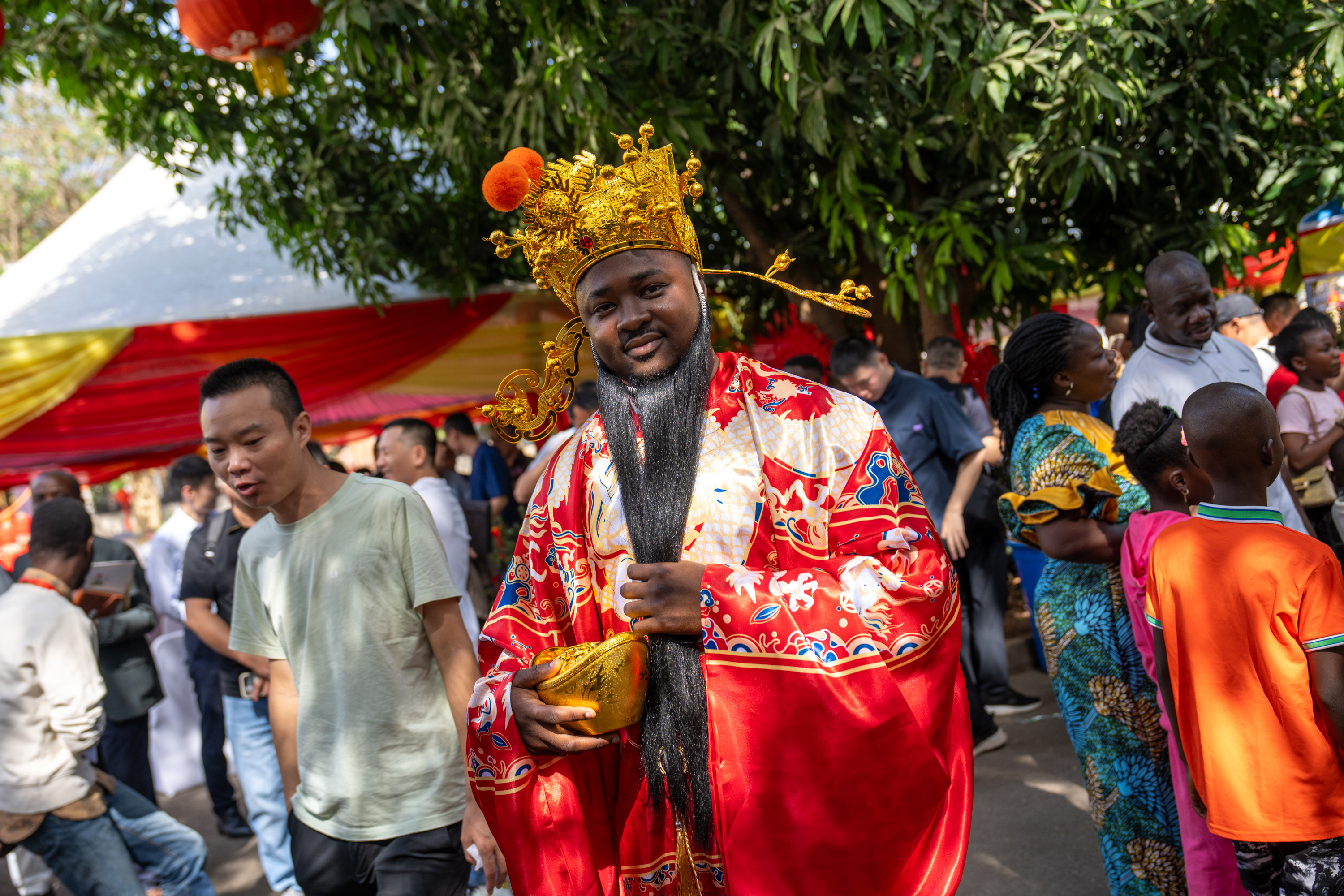 本次“欢乐春节”活动由中国驻尼日利亚大使馆、尼日利亚联邦艺术文化旅游和创意经济部、北京市文化和旅游局共同主办;北京市海外文化交流中心、尼日利亚中国文化中心、尼日利亚国家艺术团共同承办;尼日利亚中国总商会协办。活动以“春节庙会”展现“中国年,在一起”的核心理念,精心设计了“文艺演出”“非遗展示”“美食广场”“文旅推介”“助兴演出”“游戏互动”等六个板块,吸引了多国驻尼使节、尼社会各界代表、在尼华侨华人等2000余名参与,共同感受中国春节带来的温暖与欢乐,分享这一盛大的文化庆典。