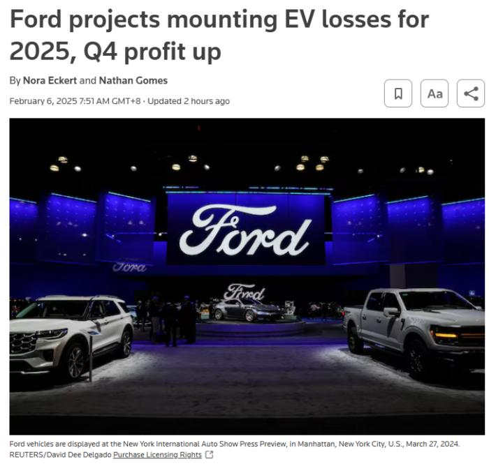 外界认为,在经历了2024年的业绩和裁员风波后,福特对2025年营收疲弱的预期给管理层带来巨大压力。