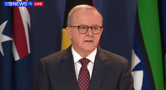 当地时间3月12日,阿尔巴尼斯在悉尼举行新闻发布会。图源:澳大利亚《布里斯班时报》视频截图