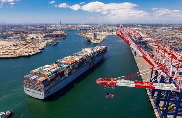 在截至4月25日的一周内,有十艘集装箱船抵达了美国洛杉矶港和长滩港,所载货物达55.5万吨,这一数字与去年同期大致相当。