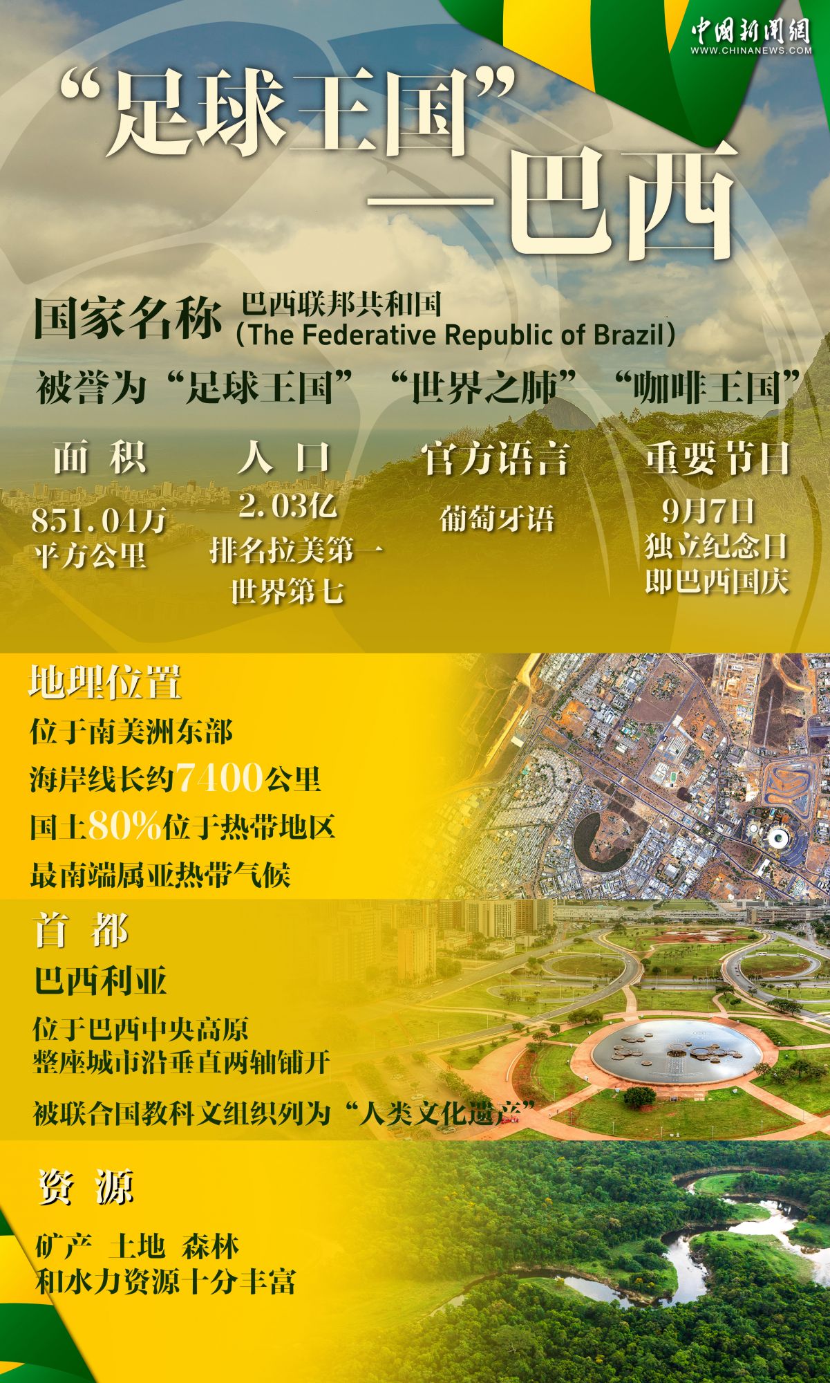中新网5月13日电 桑巴舞步摇曳生姿,绿茵场呐喊点燃激情,咖啡香飘万里。多元文化在此交融,狂欢节彩带飞扬……巴西用最炽热的姿态,向世界绽放它永不枯竭的生命活力。