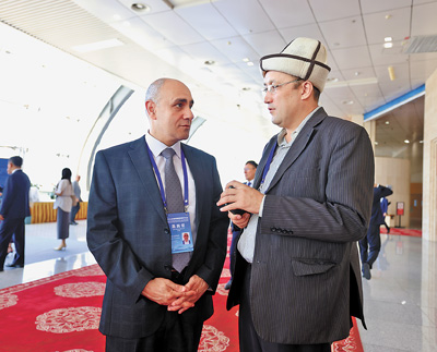 2025上合组织国家媒体合作论坛开幕式前,与会嘉宾进行交流。本报记者 蒋雨师摄
