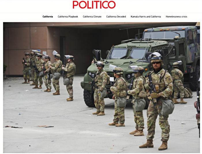 加州国民警卫队在洛杉矶街头部署。图/美国《政治报》