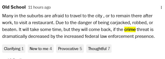 《华盛顿邮报》这篇名为“这个城市死了”的文章引发美国人激烈讨论,读者们在评论区留下了890多条评论,有批评军队上街的,有支持打击犯罪的,也有吐槽当地饭店的。