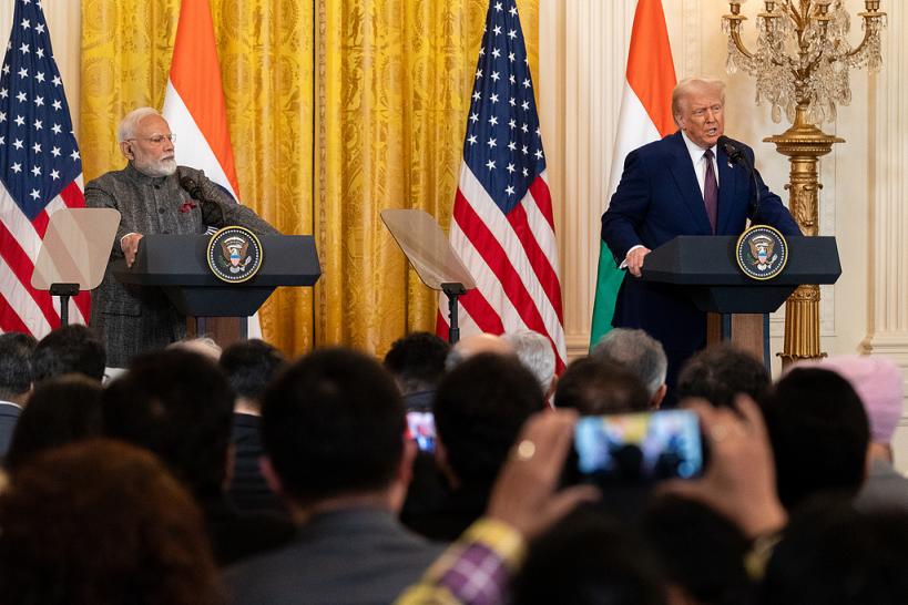 △2月13日,美国总统特朗普(右)与到访的印度总理莫迪在华盛顿白宫出席联合记者会。