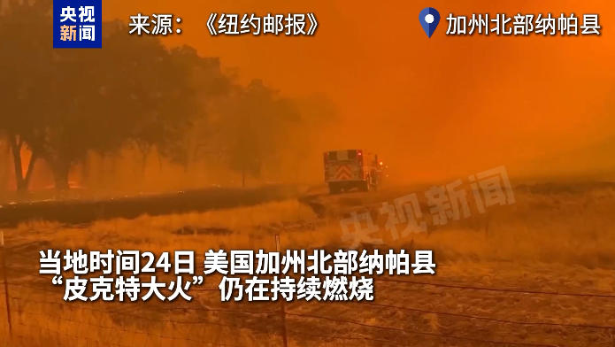 当地时间24日,美国加州北部纳帕县的“皮克特大火”仍在持续燃烧,此次山火自21日爆发以来,已持续4天。截至目前,大火仅有11%受控。