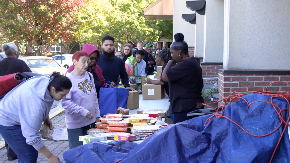 当地时间10月21日,美国联邦政府“停摆”已经整整三周。当天,记者在华盛顿特区一处救济点看到,被拖欠工资的联邦雇员排起了延伸数十米的长队,领取免费食品以解“燃眉之急”。
