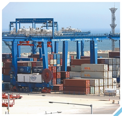 秘鲁钱凯港码头摆放的集装箱。玛丽安娜·巴索摄(新华社发)