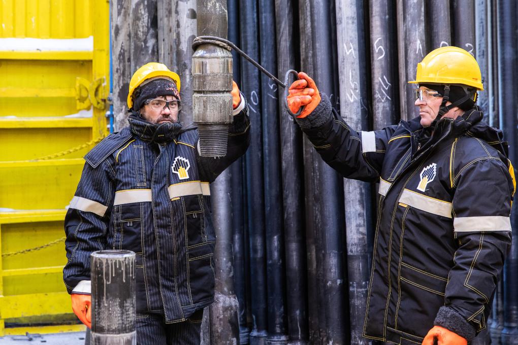 2019年2月27日,在俄罗斯克拉斯诺亚尔斯克边疆区的万科尔油田,工作人员在钻井现场作业。新华社记者白雪骐摄