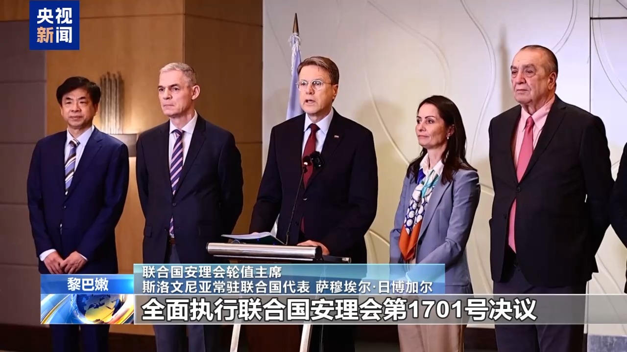当地时间12月6日下午,联合国安理会轮值主席国斯洛文尼亚常驻联合国代表萨穆埃尔·日博加尔在黎巴嫩访问期间举行记者发布会,重申安理会支持黎巴嫩的安全稳定和全面执行第1701号决议的承诺。