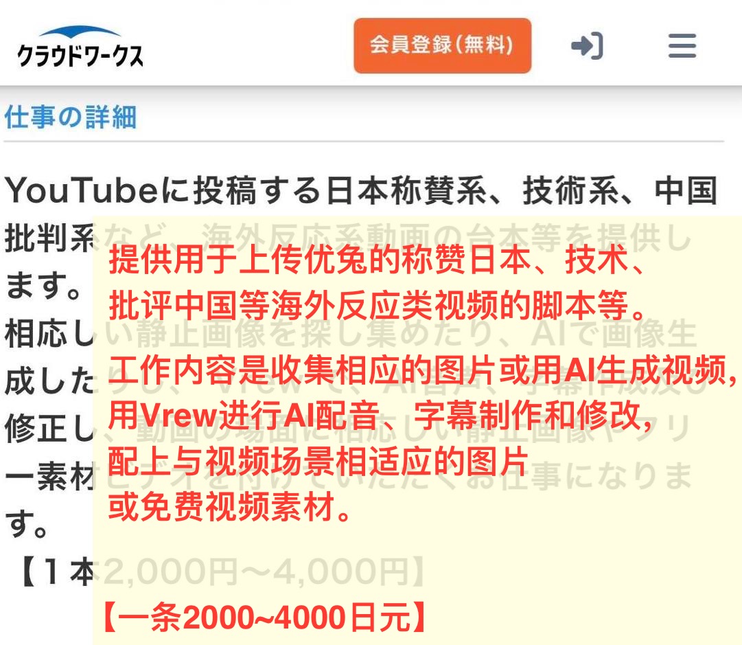 11月下旬以来,CrowdWorks网站上多条招募帖文引发关注。这些帖文面向视频制作者征集视频,主题须为“称赞日本”“批评中国”等内容。