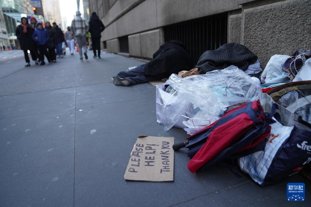时值岁末,在美国纽约充满节日气氛的街头,时常可见无家可归者和其他寻求救助的人们。