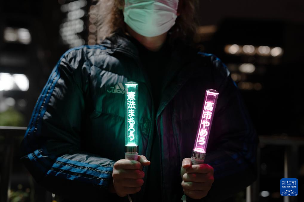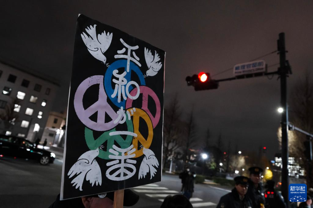 12月23日,在日本东京的首相官邸前,民众参加抗议集会。新华社记者 贾浩成 摄