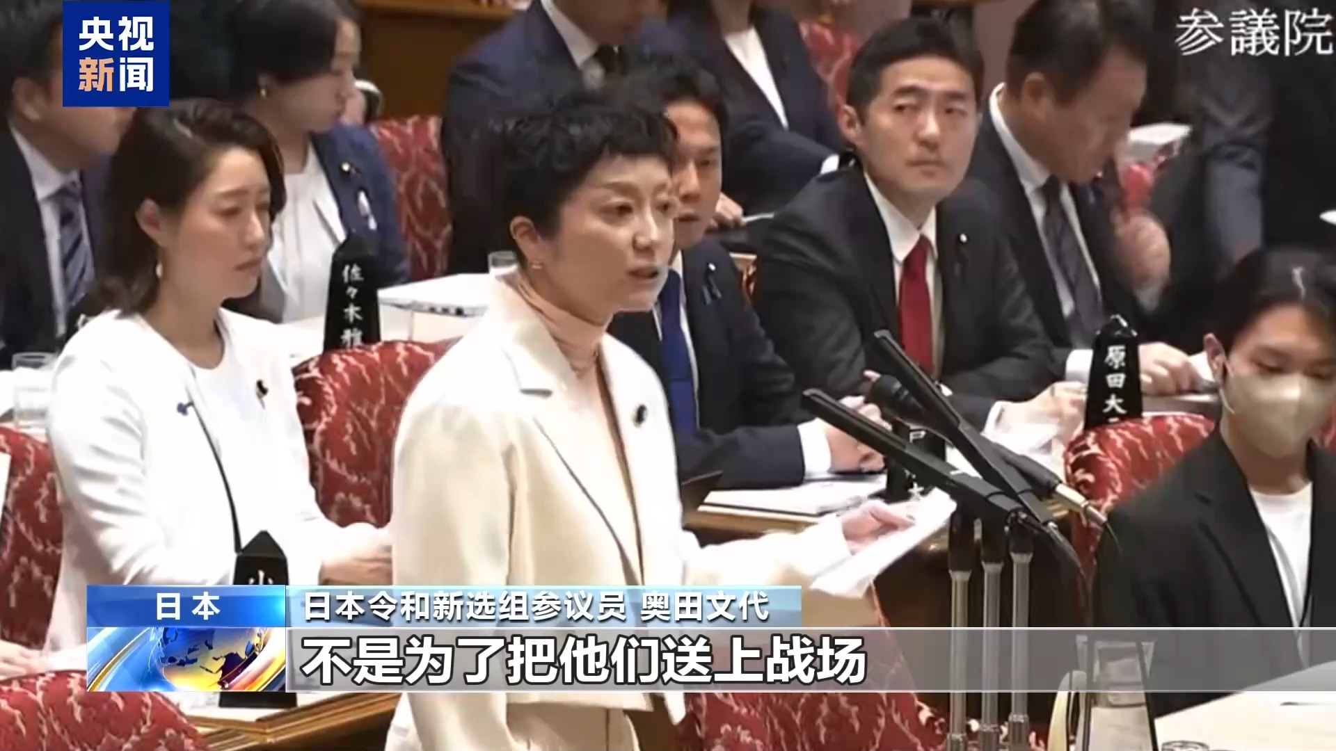 日本令和新选组参议员 奥田文代:母亲们生下孩子,不是为了把他们送上战场。政客存在的意义不就是守护这个国家所有孩子的生命吗?