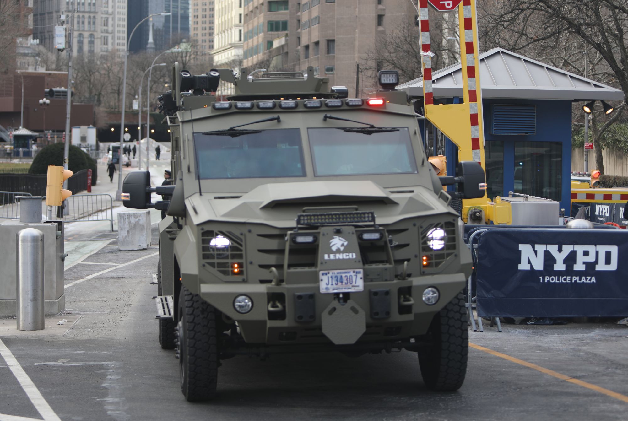 2026年1月5日,委内瑞拉总统马杜罗乘坐的车辆离开美国纽约南区联邦地区法院。遭美国强行控制的马杜罗夫妇5日中午在该法院首次出庭,拒绝美方所谓“犯罪”指控。新华社记者张凤国摄