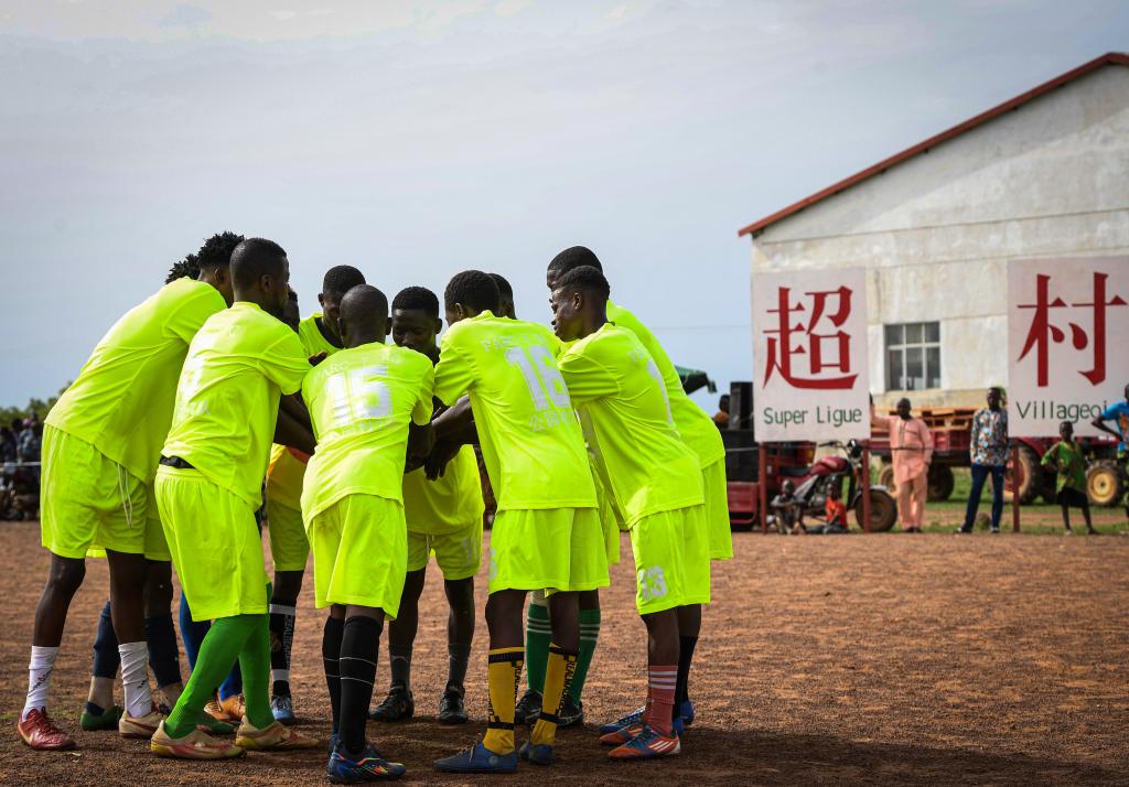 2024年5月25日,在贝宁帕拉库市美丽城村的中国援贝宁棉花技术援助项目基地旁,当地首届“村超”足球联赛决赛举行。新华社记者 李亚辉 摄