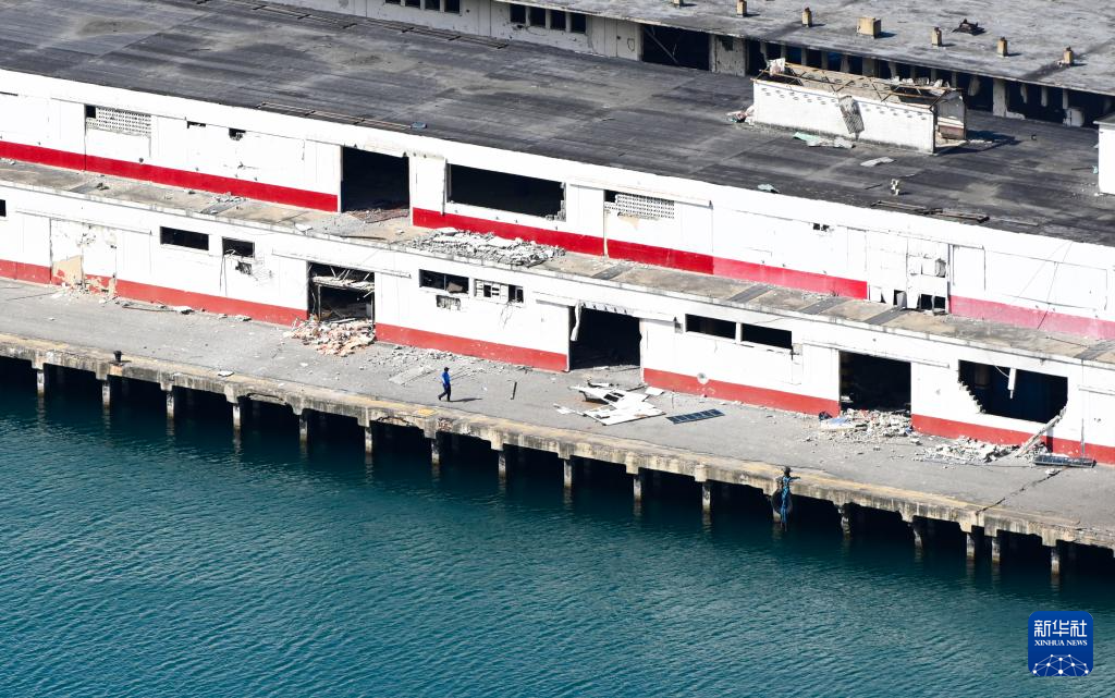 这是1月11日在委内瑞拉拉瓜伊拉港拍摄的美军空袭后的受损建筑。新华社记者 丁洪法 摄