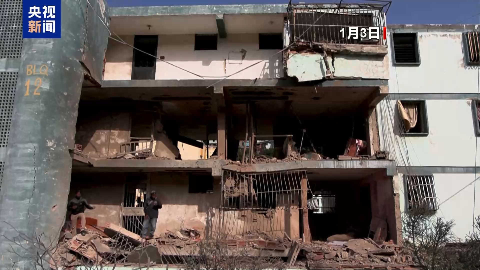 总台记者 冯丽:我现在来到了1月3日被突袭的拉瓜伊拉港,我身后的这栋建筑物是当天凌晨被导弹集中的一栋居民楼。可以看到,我身后有很多的工人正在进行现场修复施工。