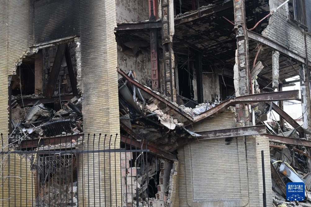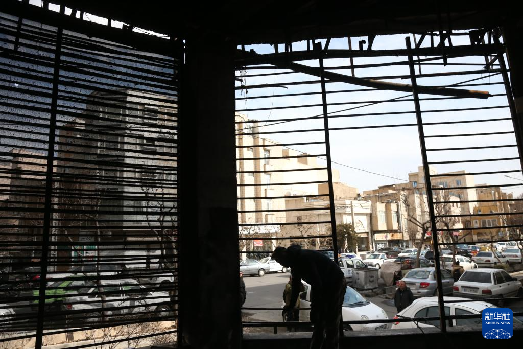 这是1月21日在伊朗首都德黑兰拍摄的在近期骚乱中受损的一处税务局建筑。新华社记者 沙达提 摄