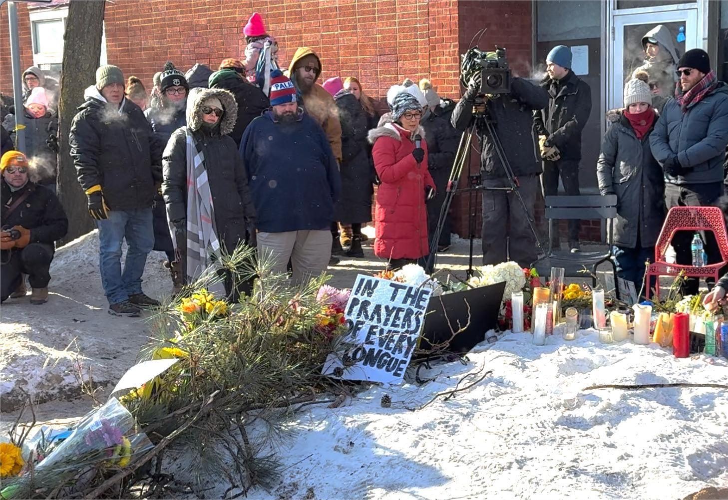 1月25日,在美国明尼苏达州明尼阿波利斯,人们悼念枪击事件遇难者(手机照片)。美国明尼苏达州最大城市明尼阿波利斯24日上午再次发生移民执法枪击事件,造成一名37岁的美国男性公民死亡。这一突发事件导致当地紧张局势进一步升温,联邦政府与地方政府分歧进一步加剧。新华社发