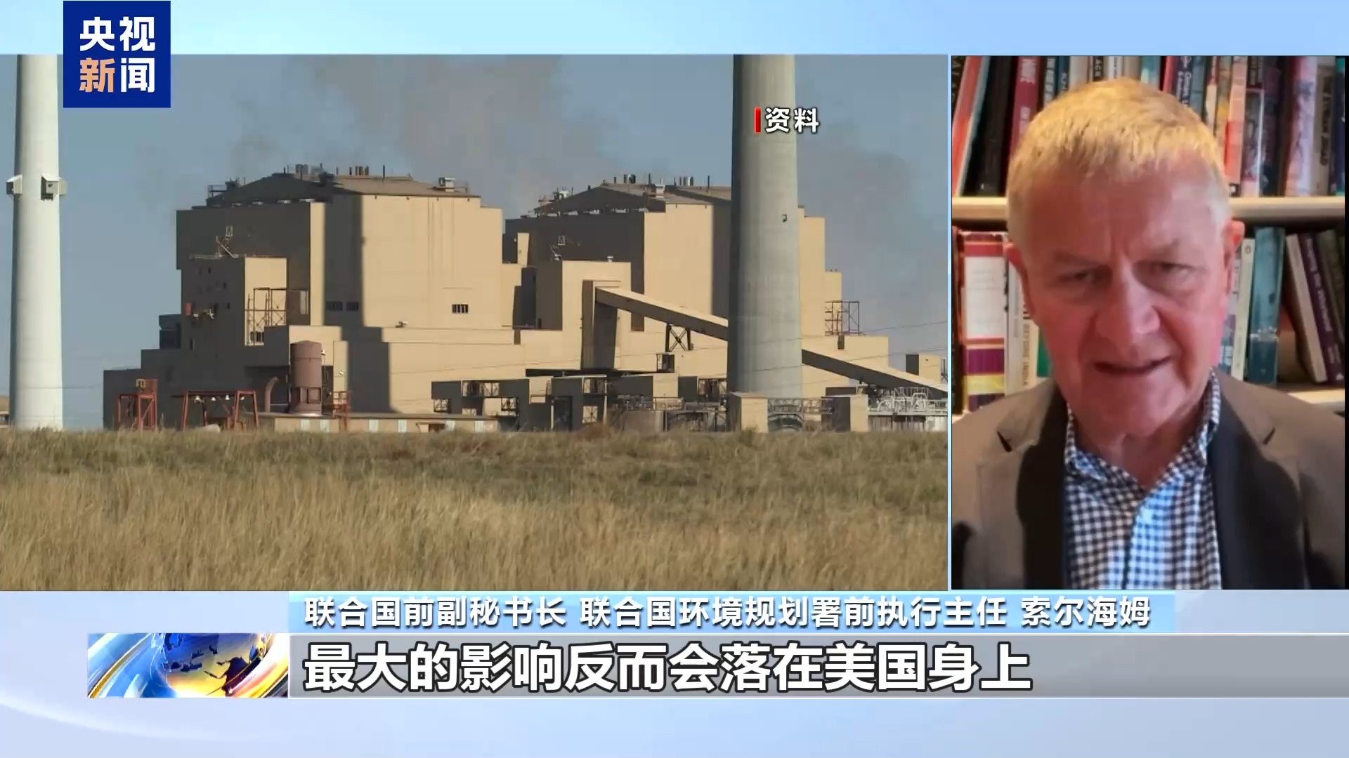 联合国前副秘书长 联合国环境规划署前执行主任 索尔海姆:我认为,讽刺的是最大的影响反而会落在美国身上,因为美国现在正在削减在太阳能、风能和电动汽车方面的投入。