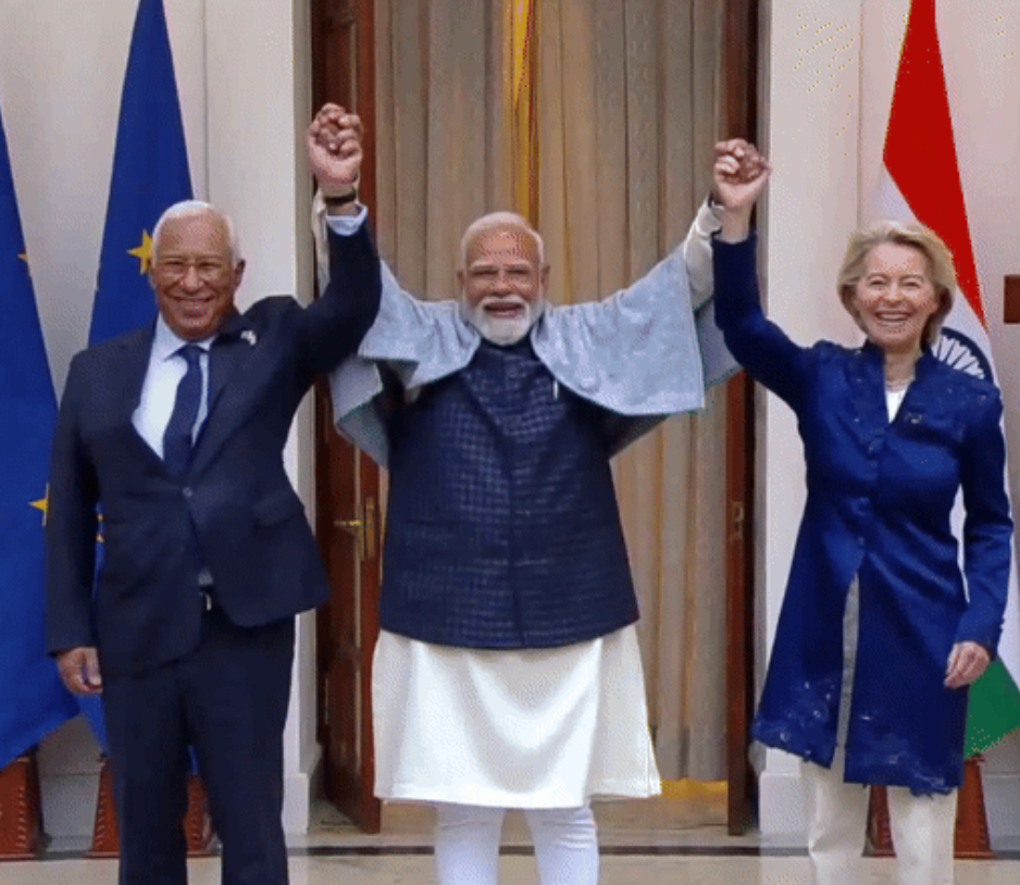 当地时间1月27日,印欧领导人在新德里举行会晤。印度总理莫迪宣布,印度和欧盟达成自由贸易协定,并表示该协议覆盖全球GDP的25%和全球贸易额的三分之一。