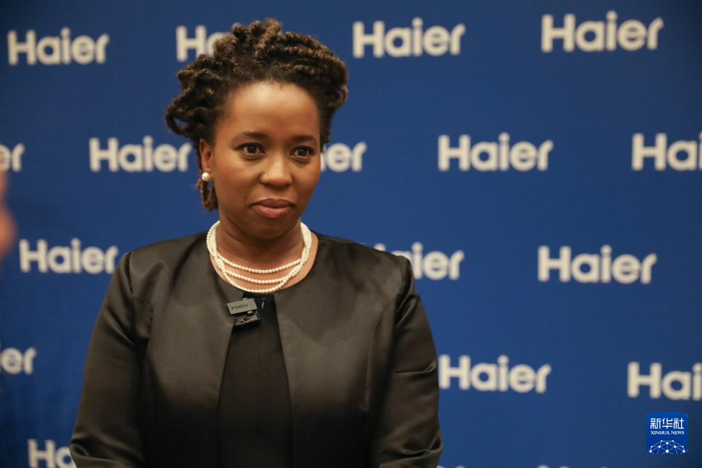 2月2日,在南非约翰内斯堡举行的海尔集团旗下子公司海尔智家产品发布活动上,南非豪登省政府执委会成员武伊斯瓦·拉莫豪帕接受新华社记者采访。新华社记者 陈为 摄