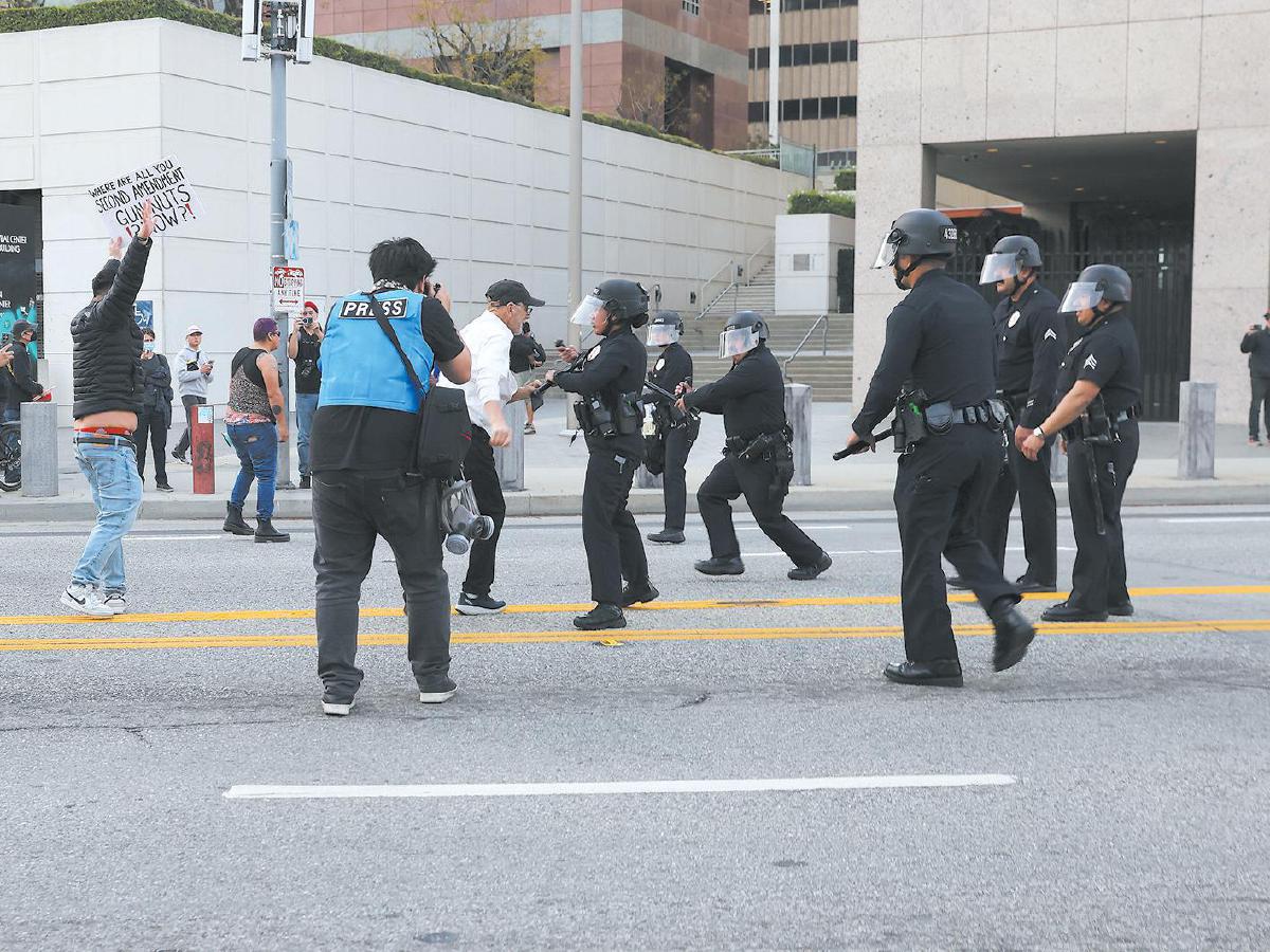 “我从公寓中看到,国民警卫队及当地警察开着装甲车全副武装来到现场,他们朝抗议者扔了震爆弹、闪光弹、催泪瓦斯,还拿着喇叭现场宣布这是非法集会,试图驱散抗议者。也有特工拿枪指着抗议群众,但应该没有开枪。”李瑞安看到,有几个抗议者被抓,大部分抗议者则寻机离开。