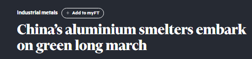 英国《金融时报》8日发表文章称,中国的铝行业已经踏上了一条绿色发展的征程,将数百万吨的铝生产从其70年来的北方煤炭产区大本营,转移至拥有丰富可再生能源的南部和西部地区。