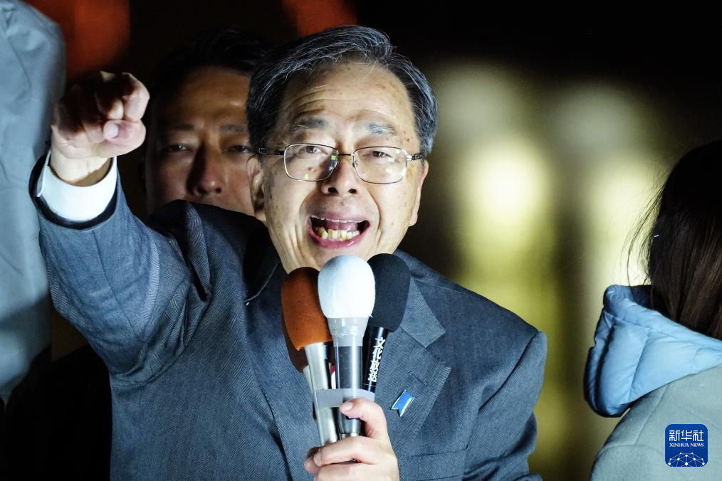 2月7日,在日本东京,日本“中道改革联合”共同代表齐藤铁夫在街头演讲。新华社记者 贾浩成 摄