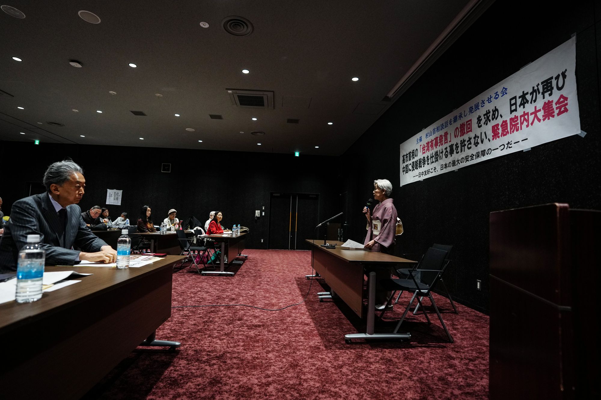 1月29日,在日本东京,日本学者在集会上发言,批评高市早苗军事扩张路线。新华社记者贾浩成摄