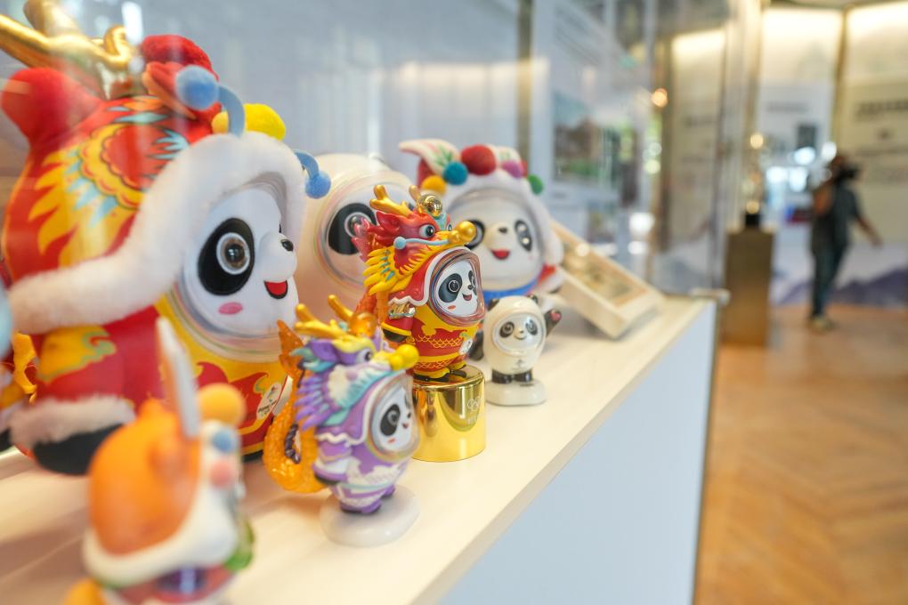 2024年7月24日在巴黎奥运会“中国之家”拍摄的“冰墩墩”系列产品。新华社记者 鞠焕宗 摄