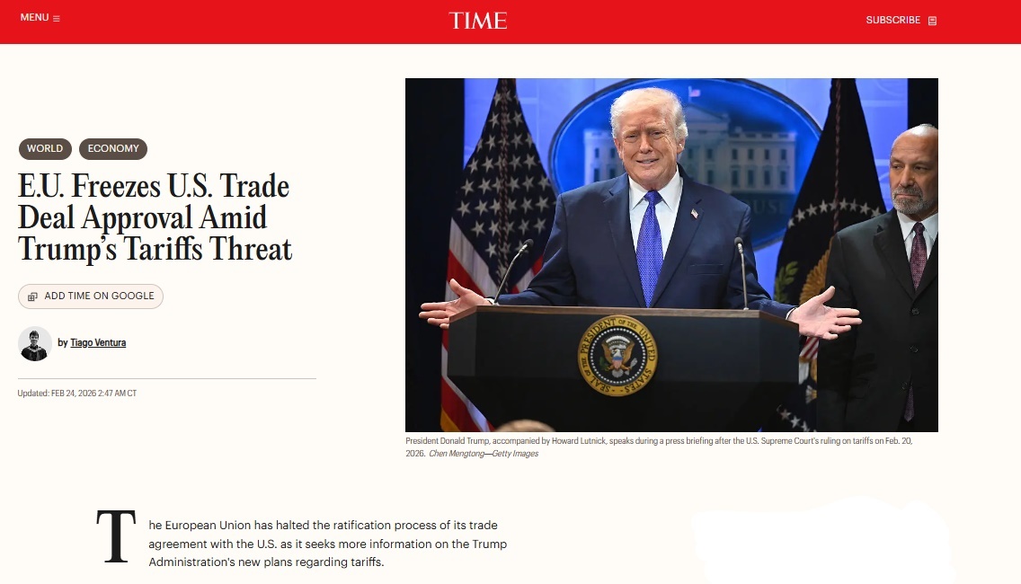 欧洲人民党党团负责美欧贸易协议谈判的首席谈判代表泽利亚娜•佐夫科当天表示,欧盟“别无选择”,只能推迟批准程序,以寻求对当前局势的明确了解。