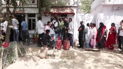 印度民众排队等待购买液化石油气。