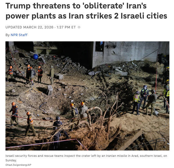 △《纽约时报》报道,特朗普发出最后通牒后,伊朗强硬回应,并袭击了以色列南部。